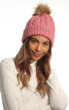 Island Green Golf IGLHAT2223 Ladies Chunky Knit Faux Fur Pom Pom Bobble Hat