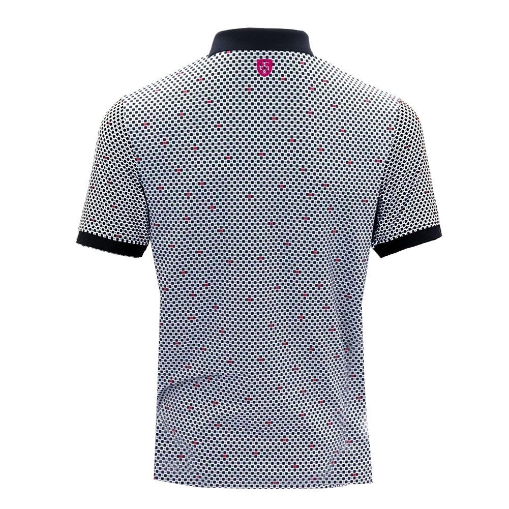 Add a touch of flair to your golf wardrobe with this Men’s Polo Shirt featuring an all-over dot print. Made from 4-way stretch jersey knit fabric, it delivers breathable comfort, UV protection, and moisture-wicking finishes. The ribbed contrast collar and cuffs, paired with the stylish placket, create a polished look for both on and off the course.