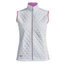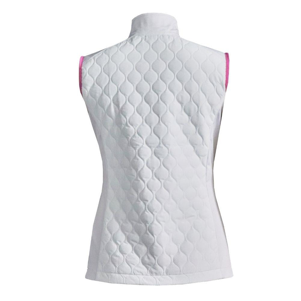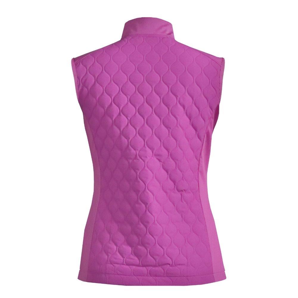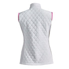 Layer up in style with this Ladies' Padded Gilet, perfect for cooler days on or off the course. Featuring a sonic-quilted front and back for added warmth and 4-way stretch fabric for unrestricted movement, this gilet combines comfort with a sleek, tailored fit. Invisible zipped pockets and elegant detailing make it a versatile and practical addition to your wardrobe.