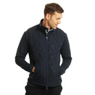 The Island Green IGVST2318 Men’s Heat-Welded Quilted Vest is made from 94% polyester and 6% elastane thermal stretch fabric with a brushed inner layer that acts as a wind guard. Its windproof and showerproof padded body features a heat-welded quilt design for added protection. The vest includes elasticated binding at the armholes, a full-length zip with top and bottom sliders, and two front welt pockets with concealed zips. A self-fabric chin guard and an adjustable elasticated drawcord at the hem provide a comfortable fit. The Island Green Shield logo is displayed on the left sleeve and back.